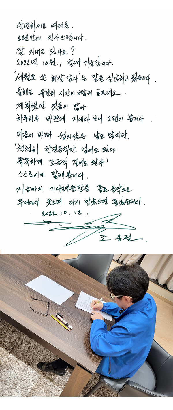코로나19로 그동안 공연이 열리지 못 했는데 다음 공연 때 여전히 건강하고 활기찬 모습으로 뵙기를 기대하겠습니다.