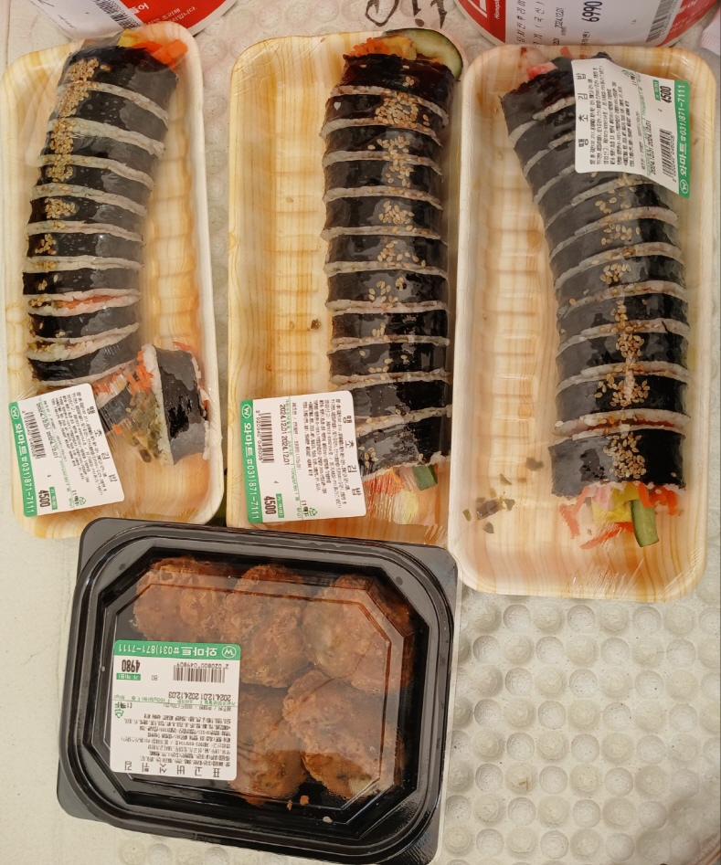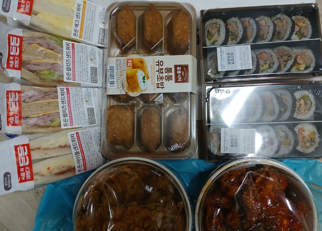 ![]() 장인선님의 샌드위치, 유부초밥, 김밥, 치킨 ![]() 남상옥 회장님의 김밥, 버섯튀김 ![]() 이경자님의 닭강정 ![]() 송희경님의 떡볶이, 튀김 ![]() 강은주님 따님의 초콜릿 쿠키 |