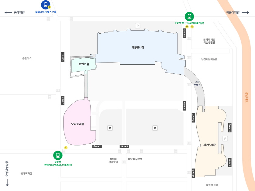 부산역 6번 출구까지 약 240m 이동 -> 지하철 1호선 부산역 승차(초량역 방면) -> 6개역 -> 서면역 하차, 도보 110m -> 지하철 2호선 승차(전포역 방면)-> 13개역 -> 센텀시티역 하차 -> 1번 출구에서 약 330m O2호선 벡스코역(시립미술관)에서 오실 경우 9번 출구에서 약 270m O동해선 벡스코역에서 오실 경우 벡스코역(시립미술관) 9번 출구에서 약 270m ------------------------------------------------------------------------ *공연 시간 : 12월 13일(토) 오후 6시, 12월 14일(일) 오후 5시 |
