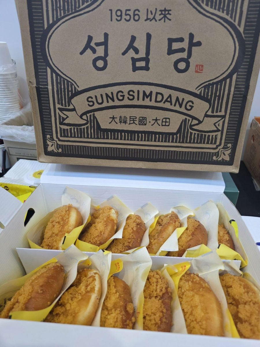 ![]() 이경자 회원님 : 귤 1박스, 떡 5팩 ![]() 이연희 회원님 : 성심당 빵 1박스 * 귤은 새콤 상큼, 떡은 쫄깃쫄깃, 소보루빵은 바삭 달콤했습니다. 따뜻한 후원에 부스에 있던 회원들과 같이 맛있게 나누어 먹었습니다. 감사합니다. ^^ |