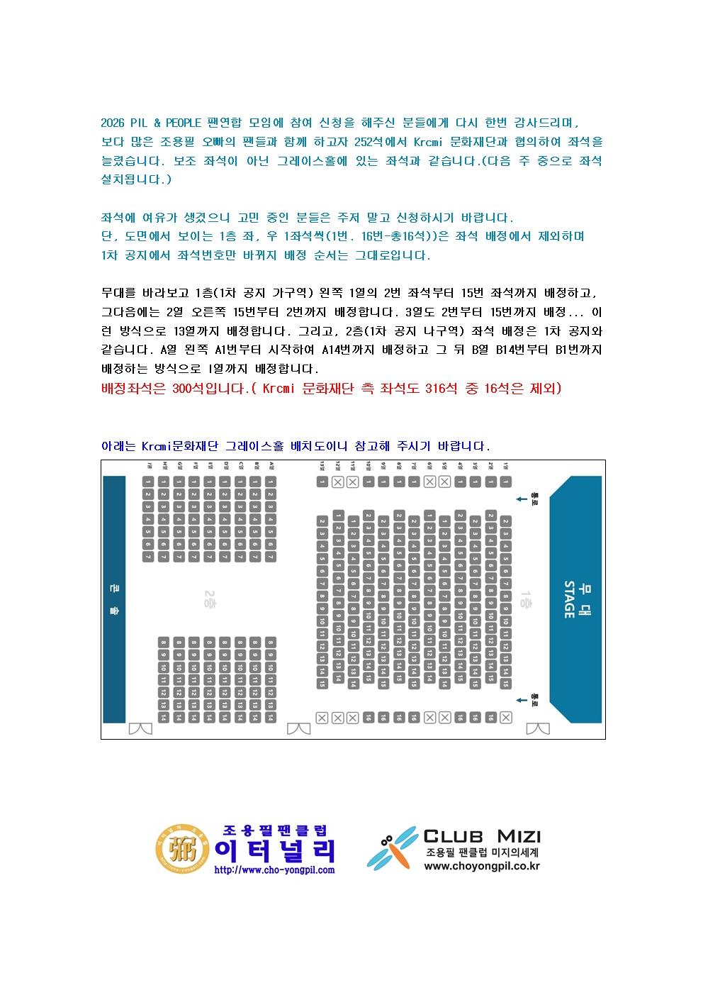 2026 PIL & PEOPLE 팬연합 모임 좌석배치도 변경안내