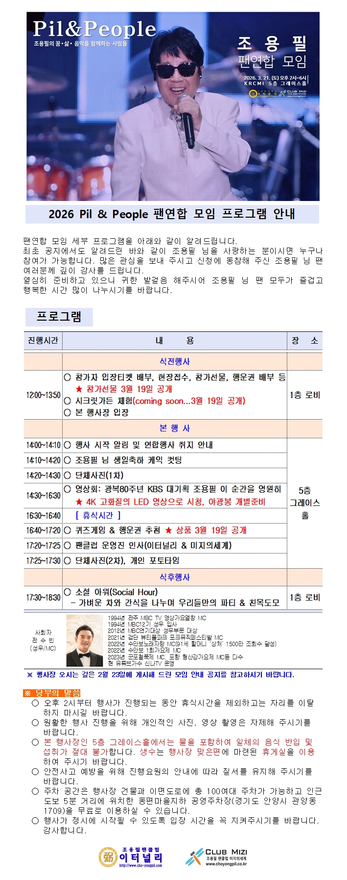 2026 PIL & PEOPLE 팬연합 모임 프로그램 공지입니다.
