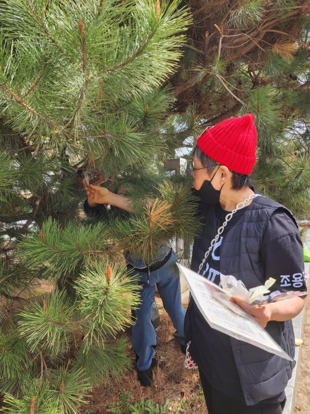 ![]() ![]() 사진2, 3 : 2025. 4월 오빠나무에 부착했던 오빠 약력표와 스티커 제거 |