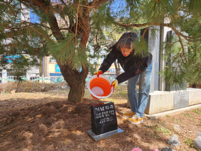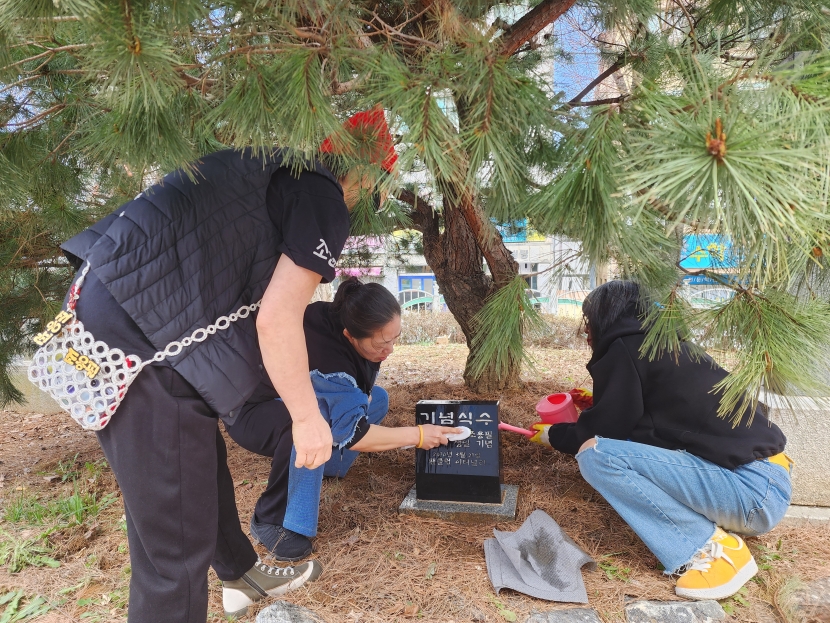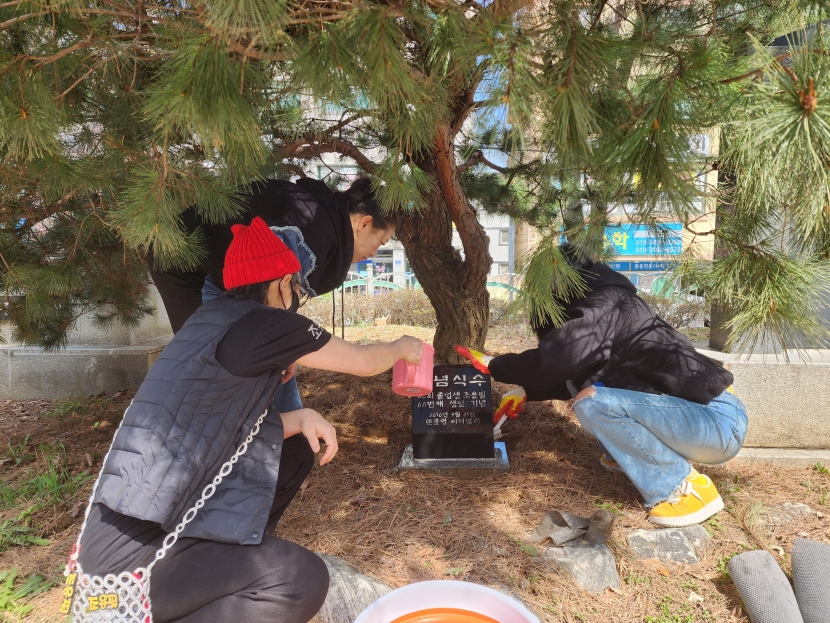 [오빠나무 돌봄행사][사진] 기념석 닦기