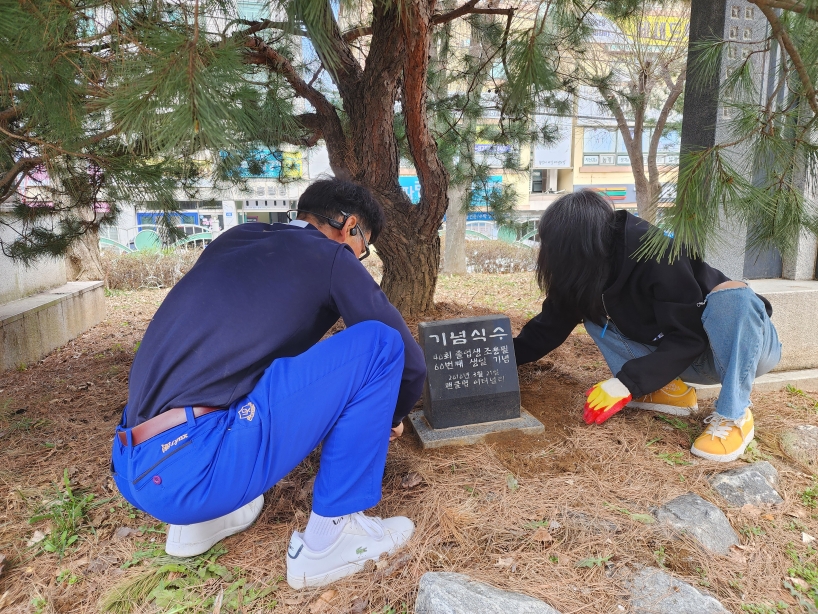![]() ![]() ![]() 사진1 : 기념석 주위 땅 고르기 사진2~4 : 기념석 닦기, 물청소 |