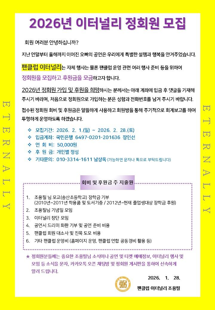 2026년 이터널리 정회원 및 후원금 모집 안내
